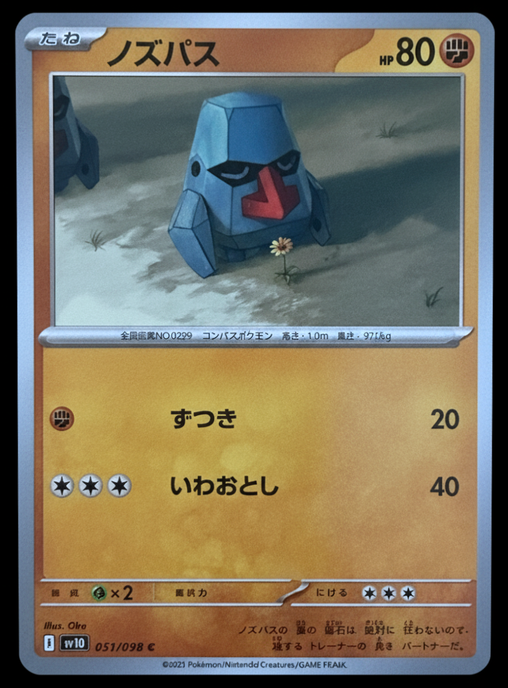 - Japanese: ノズパスの 鼻の 磁石は 絶対に 狂わないので、旅する トレーナーの 良き パートナーだ。