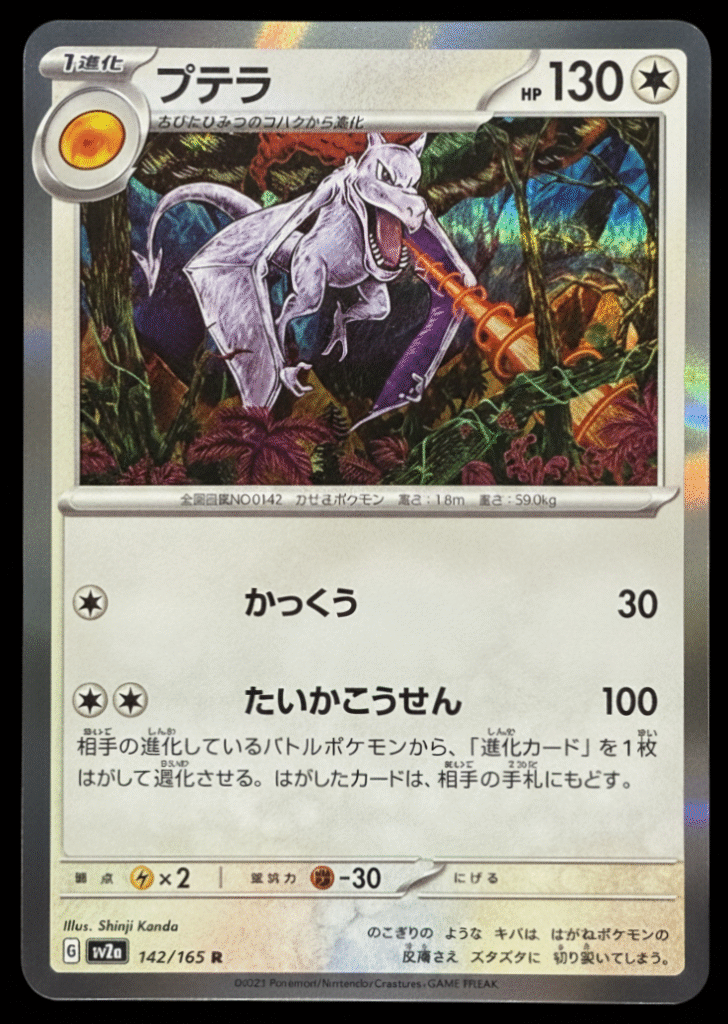 - Tags: Aerodactyl, Pokémon Card 151, sv2a, Shinji Kanda, Colourless Type, Rock Type, Rare, Pokedex 142, Pokemon 2023, Scarlet & Violet Era, Fossil Pokémon