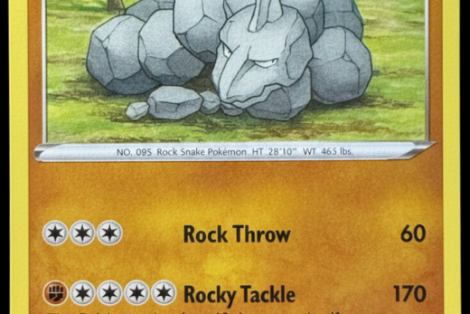 As the first stage of the Aggron line, Aron is a foundational Geological Pokémon. A Steel/Rock-type in the video games, it represents the very beginning of the metallurgical process: the consumption of raw, iron-rich earth. Its representation as a pure Metal type in the TCG reflects this core identity. The Pokédex entry, describing how it sheds its old armour upon evolution, is a wonderful biological parallel to the process of smelting and recasting metal. It’s a fantastic card that tells the story of geology, mining, and industry all in one small package.